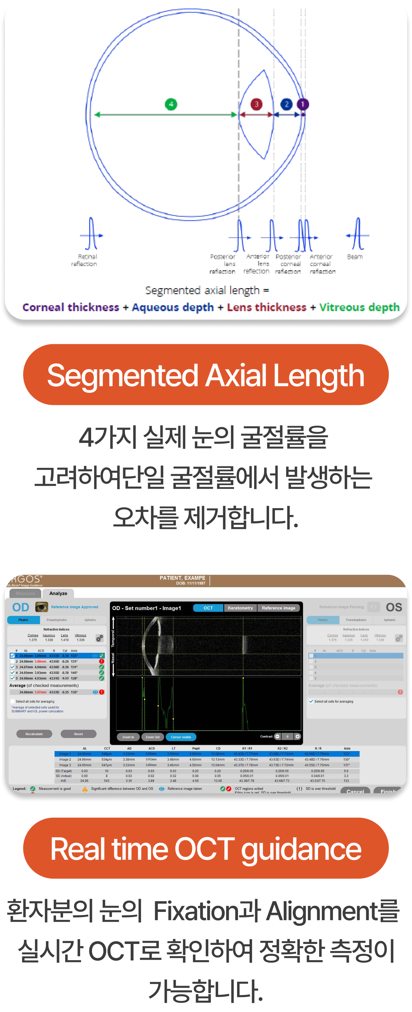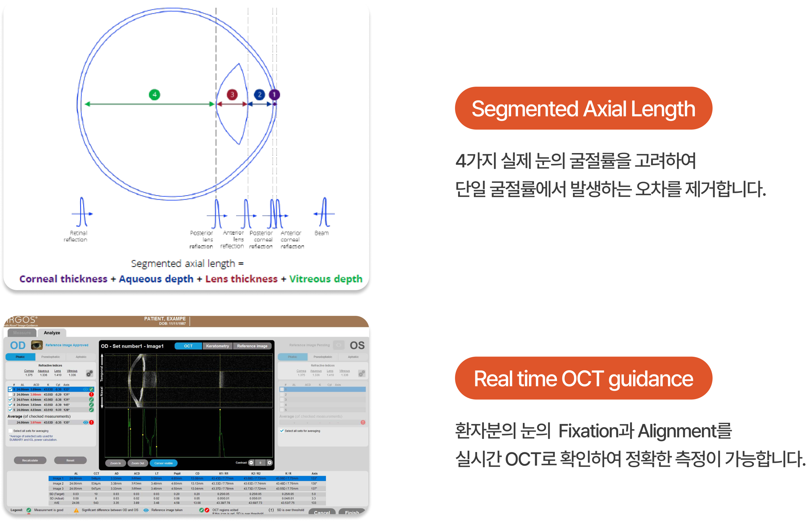 환자 눈의 Fixation, Align 상태를 실시간으로 OCT 확인하여 정확한 측정 가능